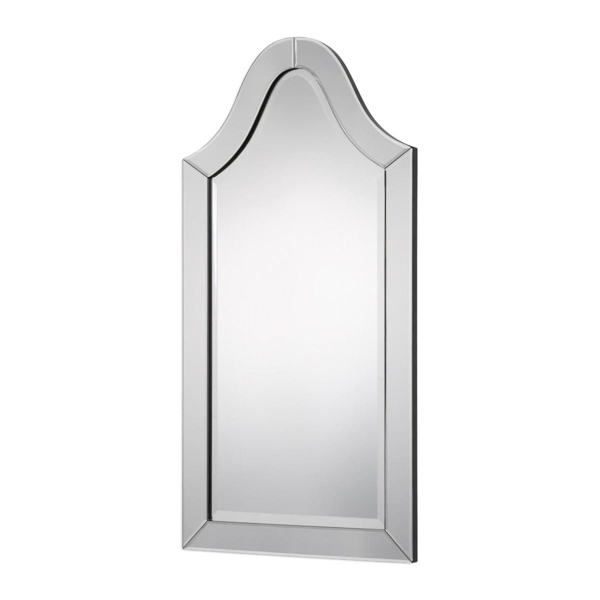 The elegant arch of this frameless mirror is designed with curved beveled mirror. The center mirror of this classic design has a 1" bevel. Whether you are looking to add the final touch to a bathroom vanity or want something special for a foyer, this dec
