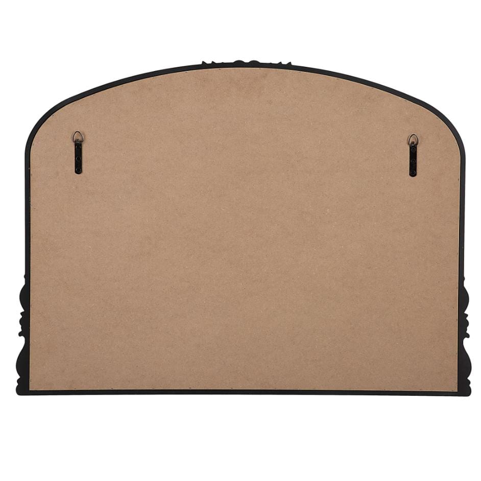 Beautiful arch top metal frame featuring scalloped corners. Finished in a satin black, this frame is a perfect choice for a bathroom vanity or over an accent table in the foyer.Also available in a bronze.