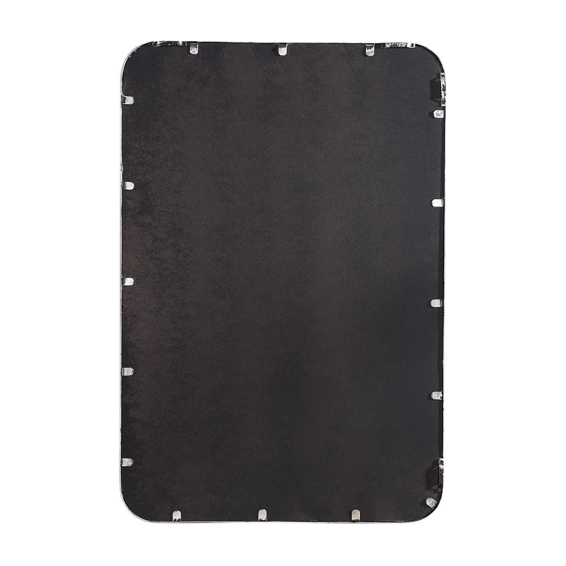 This frame, with its rounded corners and inner ledge, is made of a thick metal strap and finished in a burnished silver leaf. May be hung either vertically or horizontally.