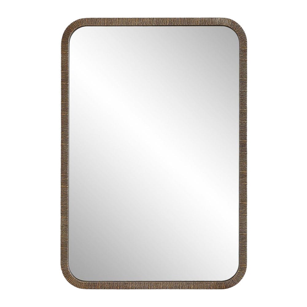 This mirror's textured frame, adorned with ridge-like patterns, not only adds depth but also enriches its visual appeal. Finished in a rich antique gold and featuring radius corners, this mirror blends classic design with modern aesthetics. May be hung either vertically or horizontally.KeiichiKeiichi delivers high-style furniture designed for contemporary living. From modern counter stools to stylish dining chairs, the Keiichi furniture collection features on-trend pieces that will elevate any interior space. Designer armchairs and accent chairs are upholstered in sumptuous fabrics including boucle and sheepskin, in relaxed designs that blend seamlessly into modern living spaces. Keiichi’s stylish selection of fashion-forward products combine quality craftsmanship with flair for every room of the home.