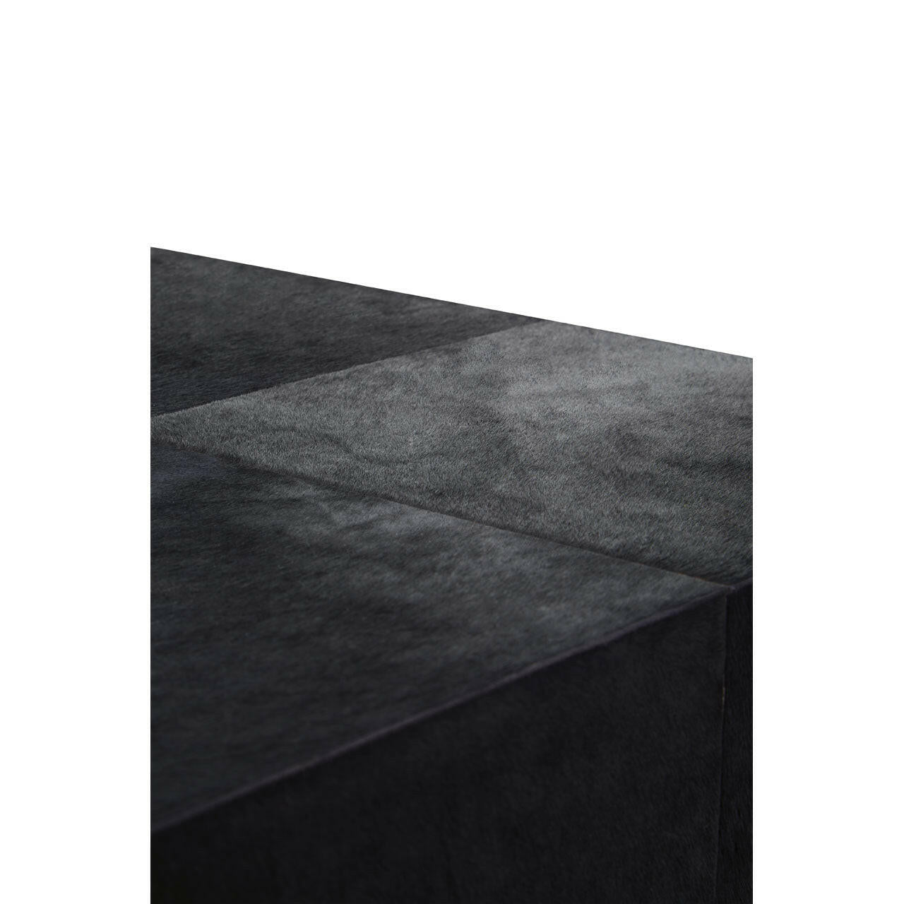 This Kensington Townhouse bedside table is almost decadent. The black hair on hide exterior is complemented beautifully by the gold frame, creating a luxe modern look. The dimensions of this bedside table are H52 x W52 x D52cm, making it the perfect size for any bedroom. It is made of a combination of metal and wood, ensuring durability and stability. The table comes fully assembled, making it easy to add to your bedroom decor. To keep it looking its best, simply clean with a soft dry cloth. Please note that as this product contains natural wood, variations in color may apply. The color of this bedside table is black, adding a touch of sophistication to any room.