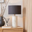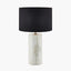 Wherever you decide to place this striking white marble table lamp, you won't be disappointed. The perfectly proportioned table lamp base, sleek finish and natural pattern within the marble is a winning combination. This stylish lamp base is complemented by a modern black cylinder linen lamp shade that is self-lined, the open weave material still allows the light to filter through that creates a soft glow.