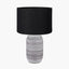 With a beautiful patterned surface created by skilled artisans in the Phillipines, this stunning white stoneware table lamp will introduce a welcome tactility into your room. Paired with a modern linen black cylinder lamp shade which is self-lined to allow the light to shine through, creating a soft glow.