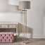 Channel the hotel vibe with this gorgeous nickel metal floor lamp base. Contemporary in style, and coupled with a modern grey linen cylinder lamp shade, this floor lamp really does create a statement.