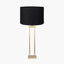 Channel the hotel vibe with this gorgeous Satin brass finish metal table lamp base. Contemporary in style, coupled with a modern black cylinder linen shade that is self-lined, with an open weave material that allows the light to filter through creating a subtle soft glow.
