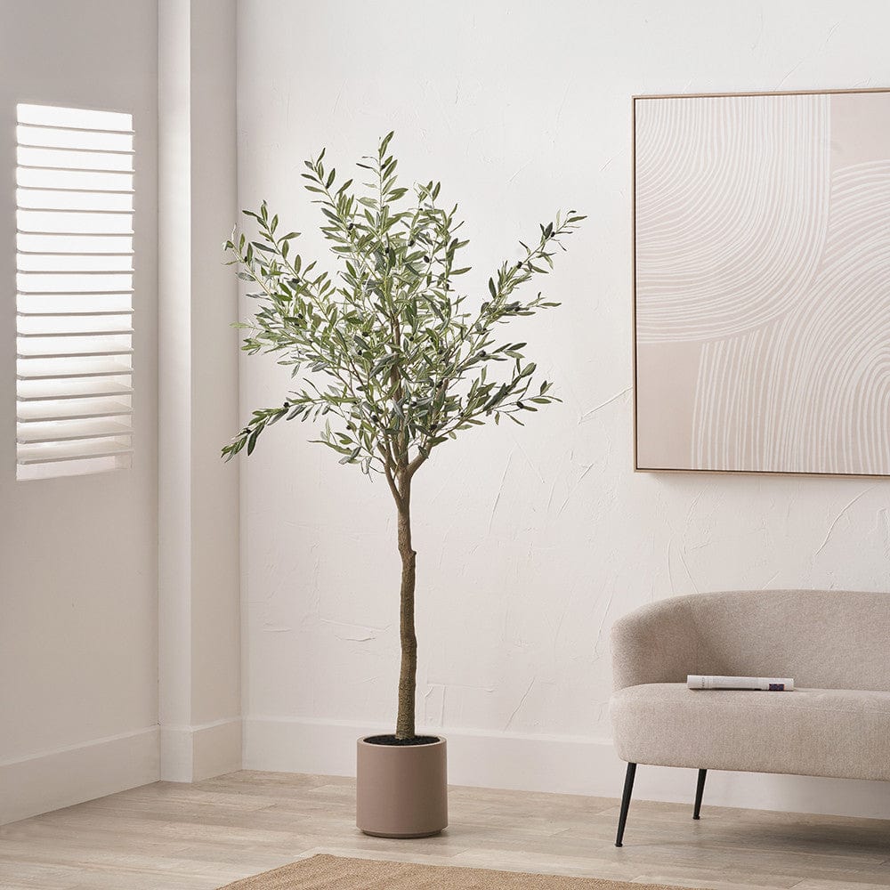 Introduce a touch of the mediterranean to your living space with our faux large potted olive tree. The large tree in a taupe-coloured polypropylene pot, will add a sophisticated touch to any room, whether placed in the corner of your living room or to welcome guests in your entrance hall, this olive tree will stand the test of time and requires zero maintenance.