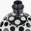 Introducing our stylish Larisa ceramic table lamp base, a true statement piece. The perfectly proportioned sphere shape is adorned with a contemporary monochrome spot design. Teamed with a modern white cylinder linen shade that is self-lined, while the open weave material allows the light to filter through.