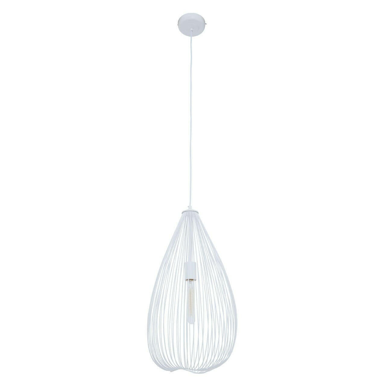 Crafted from sturdy iron in white finish, this intricate light features a sleek, moulded wire, teardrop-shaped frame which creates a geometric pattern design. The openwork frame allows for ample and ambient light to refract through the tubular bulb.