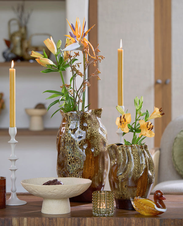 Dish on base 31x15,5 cm OTA sand+light brown spotted