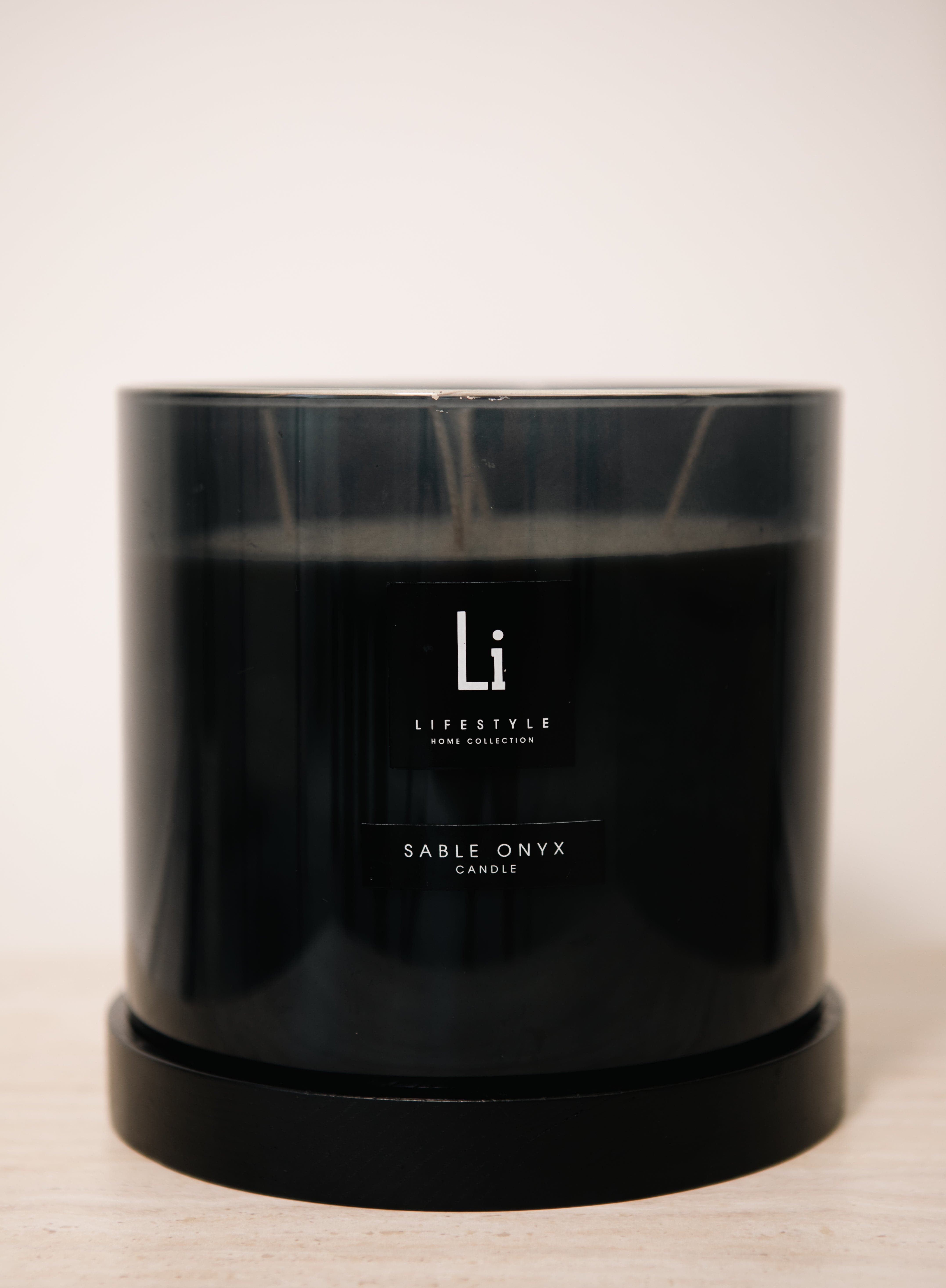 Designed for those who appreciate the finer things, our luxury oversized 5kg candles offer an impressive 180 hours of burn time, ensuring your space is enveloped in its captivating scent for days on end. Sable Onyx weaves together deep, earthy tones of Bergamot with a hint of smoky allure from the sensual combination of Oud, Tobacco and Leather, creating an ambiance that is both sophisticated and intriguing. The glass vessel sits beautifully in our exclusive bespoke wooden base tray to elevate the product and provide protection for your surfaces. We recommend you burn the candle for at least 70 minutes or until the wax pools equally across the top in liquid form , this will maintain your candle and provide optimum scent release into your space.