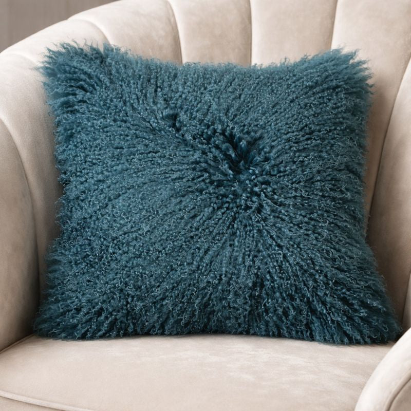 Introducing the Malini Mongolian Emerald Cushion, a luxurious addition to any home. Made from soft, textured Tibetan lambswool, this cushion comes in a selection of classic shades and features a real suede back for added elegance.