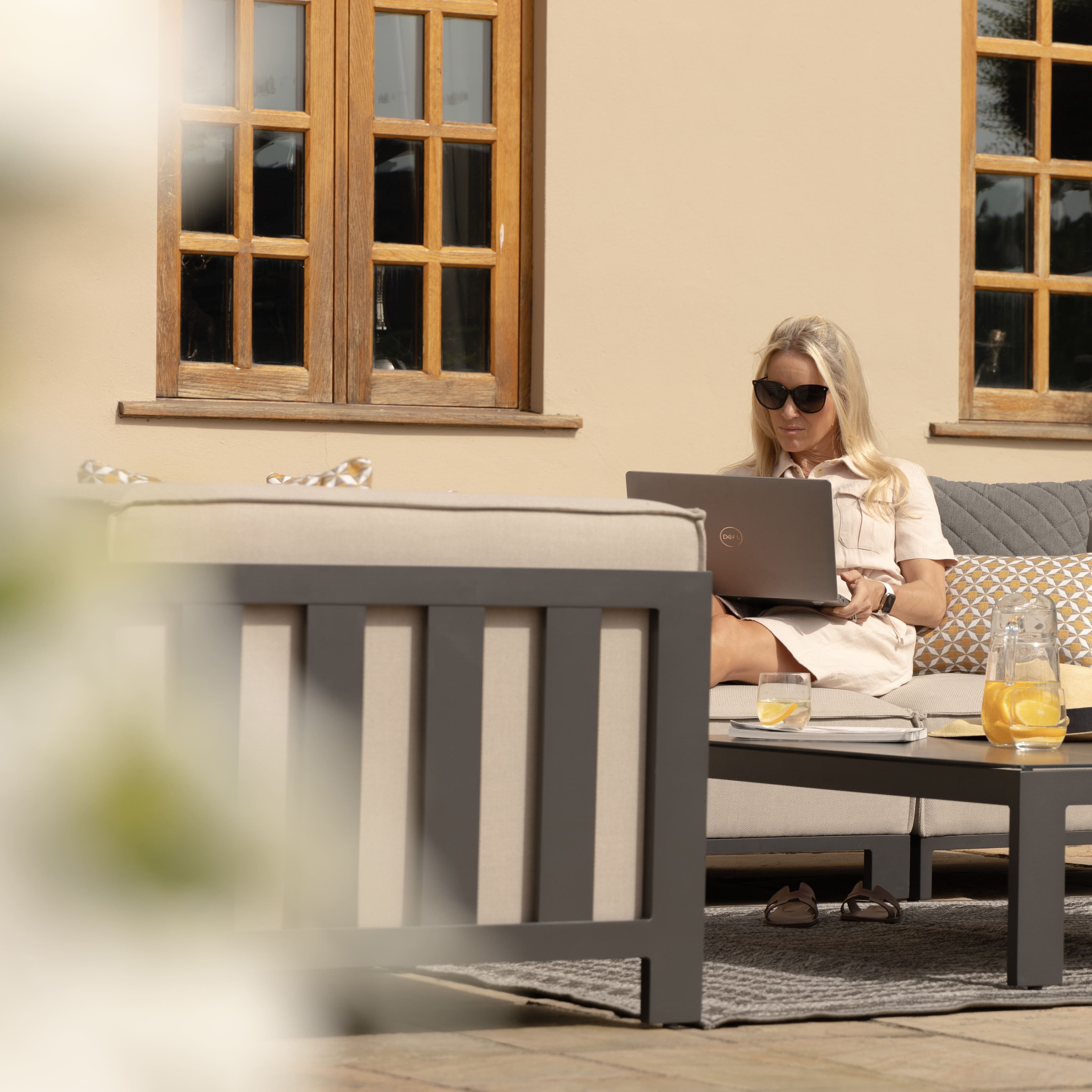 The Maze Ibiza Medium Corner Sofa Set is a luxurious, modular outdoor seating arrangement designed to enhance your outdoor living space. Finished in an elegant oatmeal outdoor fabric, this set exudes modern sophistication while offering exceptional comfort. Its modular design allows for flexible seating configurations, making it perfect for hosting gatherings or simply lounging in style. Accompanied by a sleek square coffee table featuring a premium ceramic table top, this set blends practicality with elegance. The weather-resistant materials ensure durability in all conditions, while the deep, plush cushions provide ultimate relaxation. Whether you're enjoying a quiet moment outdoors or entertaining guests, the Maze Medium Corner Sofa Set delivers both function and style to your garden or patio.