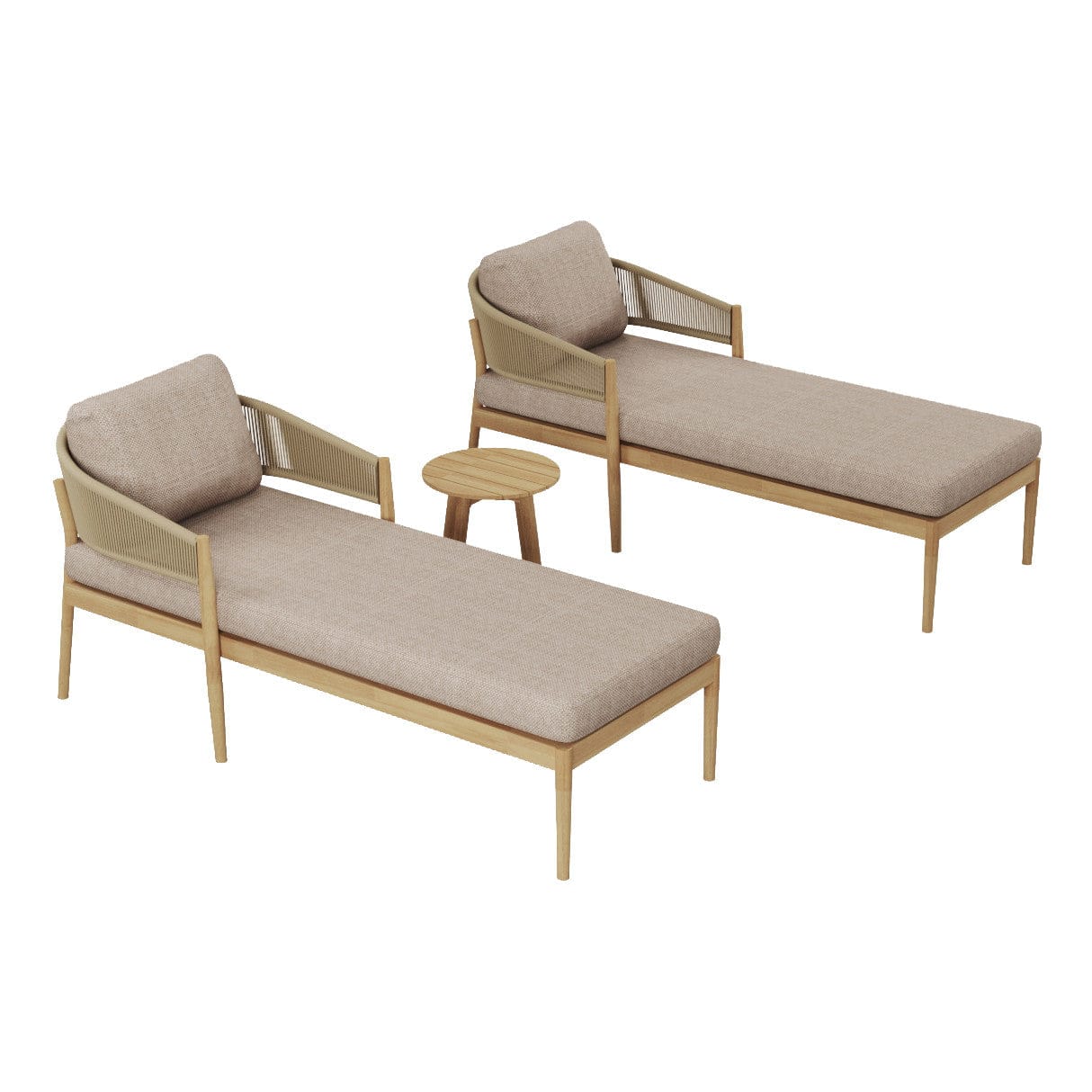 Experience the epitome of outdoor relaxation with our Porto Double Sun Lounger Set, a refined ensemble crafted for those who savour the sun in sophistication. Featuring golden brown acacia wood, sleek design lines, and comfortable cushions, this meticulously designed set invites you to unwind in style, creating your oasis of tranquillity. The Porto Double sun lounger set showcases the timeless appeal of FSC acacia wood, both in the round dining table and the accompanying chairs. Over time, this wooden double sun lounger set will gradually transition into a silvery grey hue, enhancing the character of your outdoor furniture. Each piece has been crafted with a PU coating, bolstering the wood's durability, and requires less maintenance.