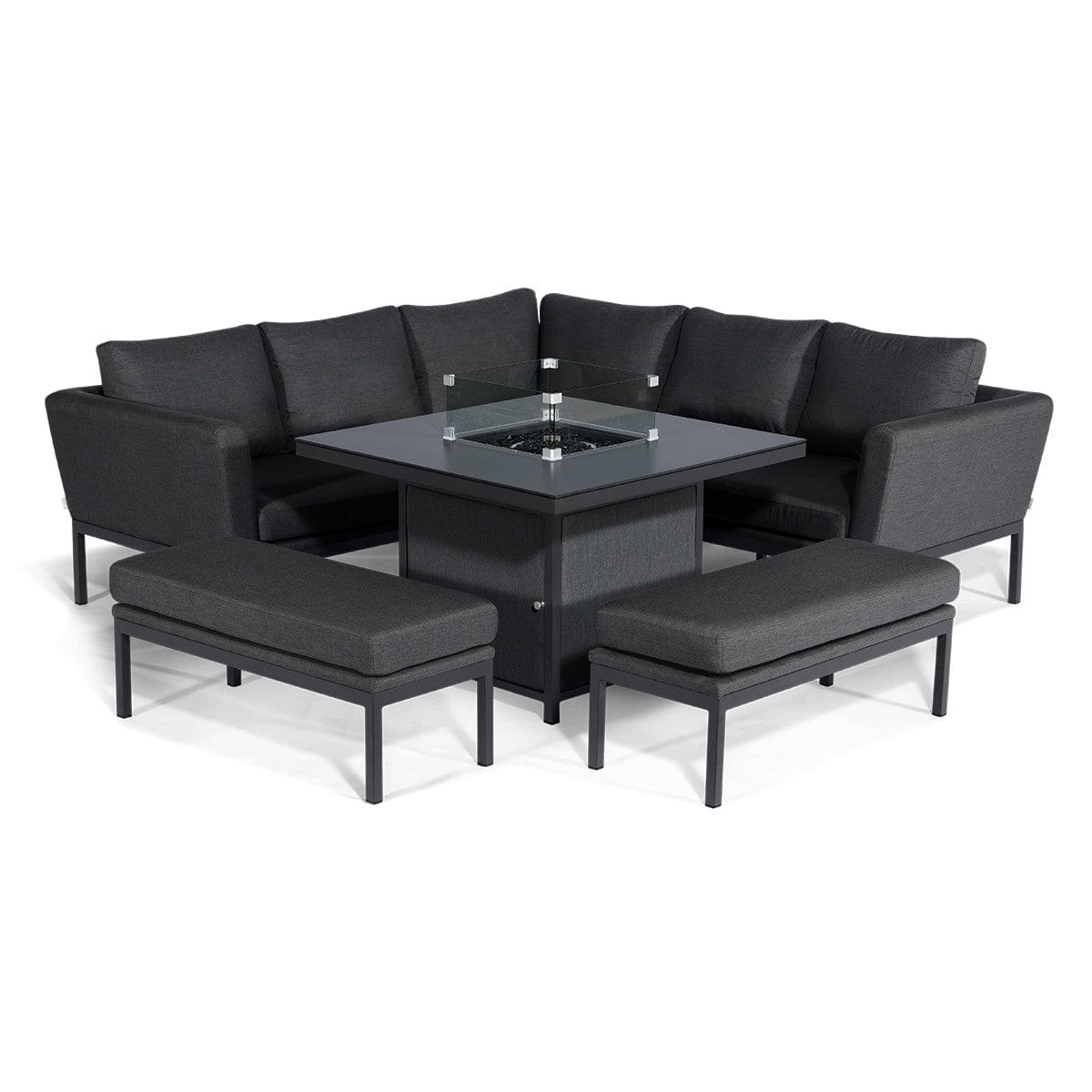 Pulse Square Corner Dining Set - With Fire Pit Table / Charcoal