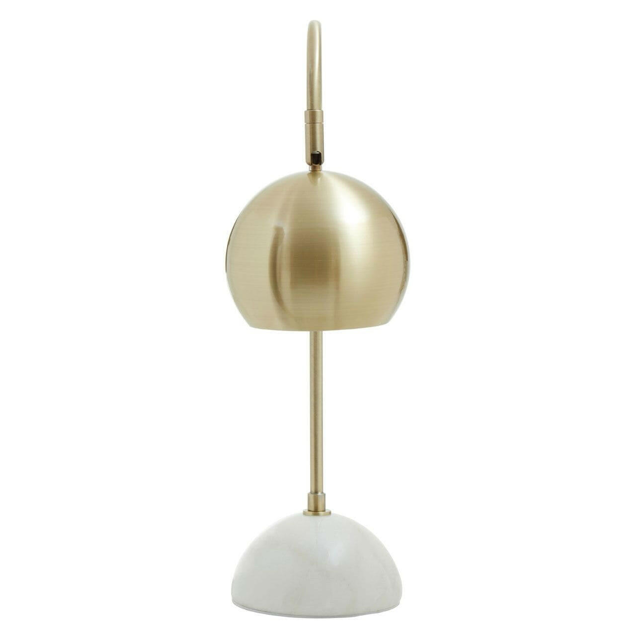 Exhibiting a slim profile, this desk lamp will make a visual statement in the living room. The slim metal stem and globe-shaped shade in a brass finish are supported by a sturdy round marble base. This floor lamp is well-suited to a wide range of styles.