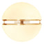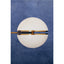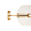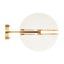 This wall light features two half spheres with an open space between them. Each plastic lampshade contrasts the brushed brass finish metalwork that accents its rim, slender column and round base to create a modern statement.