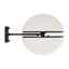 This wall light features two half spheres with an open space between them. Each plastic lampshade contrasts the matte black finish metalwork that accents its rim, slender column and round base to create a modern statement.
