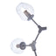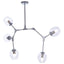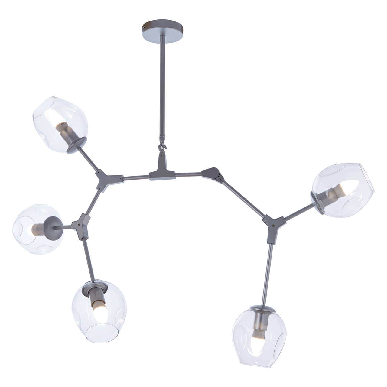 This striking lamp stretches across the ceiling like a heavenly constellation. Its frame is crafted from tough iron and has a reflective silver finish. Each bulb is housed in a round shade made from clear glass.
