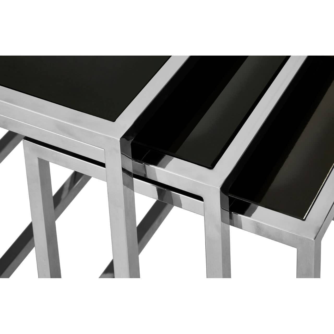 Ackley Chrome Set Of 3 Nesting Tables with Black Glass
