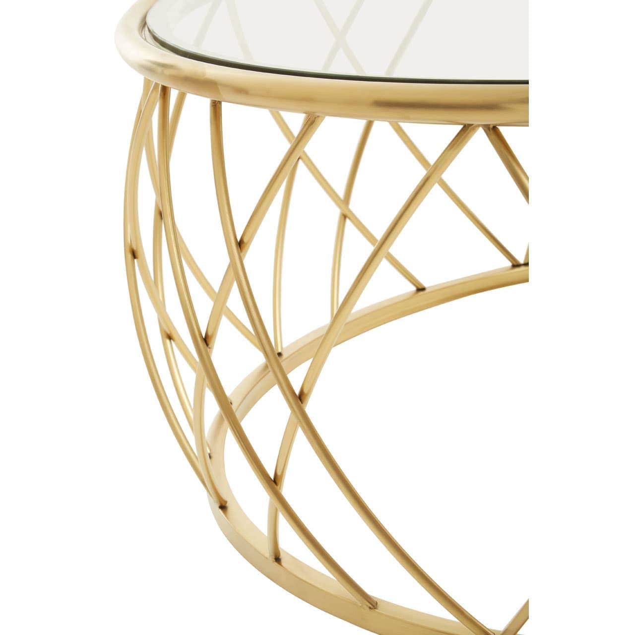 Make a modern statement with your decor. The Ackley coffee table has a clear glass top and patterned gold frame. The geomertic patterns of the sleek metallic lines add texture and depth to interior. Hastle of the frame is perfectly complemented by the clear glass top.