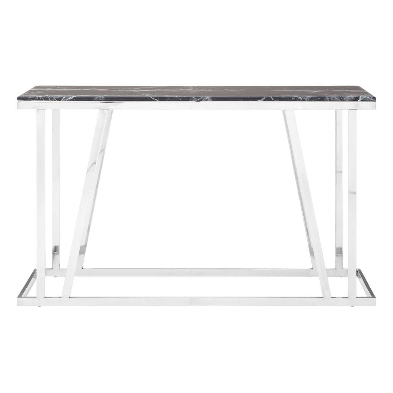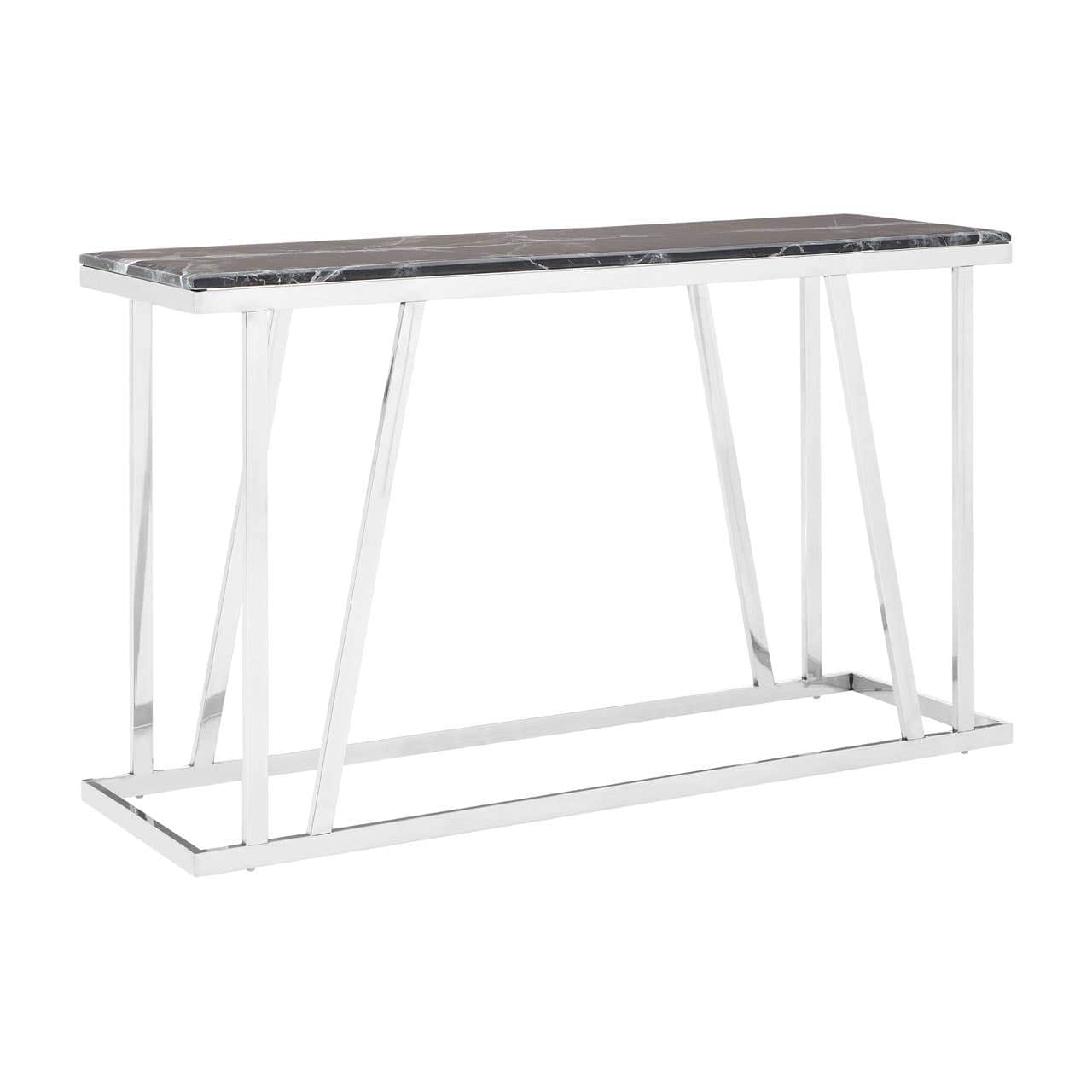 The Ackley console table is a comtemporary statement piece boasting reflective finish. Created from smooth stainless steel, the cool metallic finish of the table's frame contrasts with the black marble top.