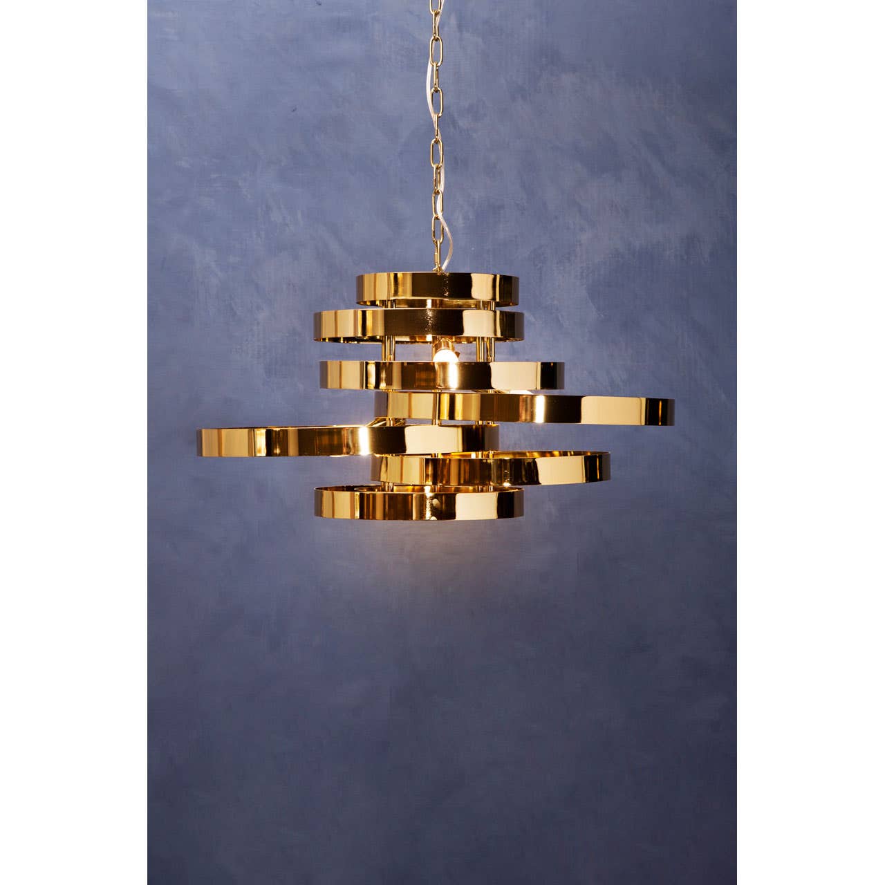 The Alana's cascading shade is made from smooth iron. The iron is given a titanium gold finish, behind which five bulbs diffuse light outwards. Display it in a contemporary setting to make a glamorous impression.