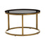 Coming in a set of two, each of these nesting side tables has a rounded grey tempered glass top. The robust glass contrasts the luxe, brushed gold finish frames featuring clean lines and minimalism.