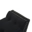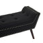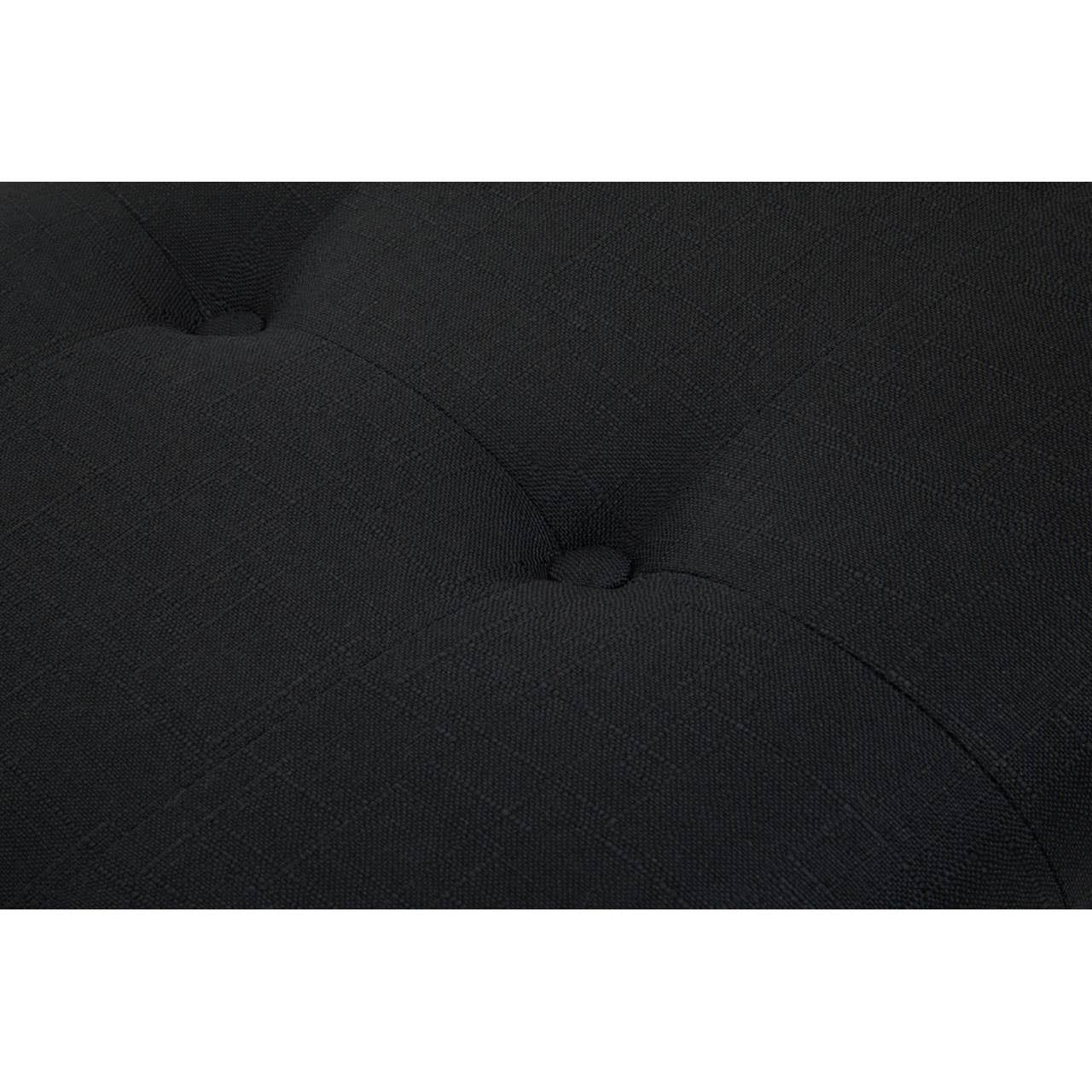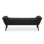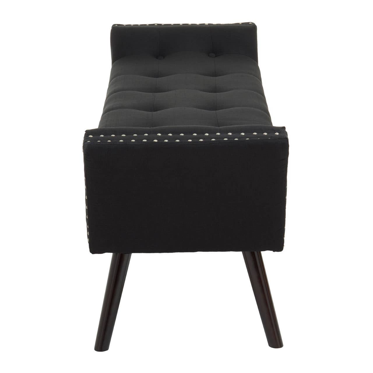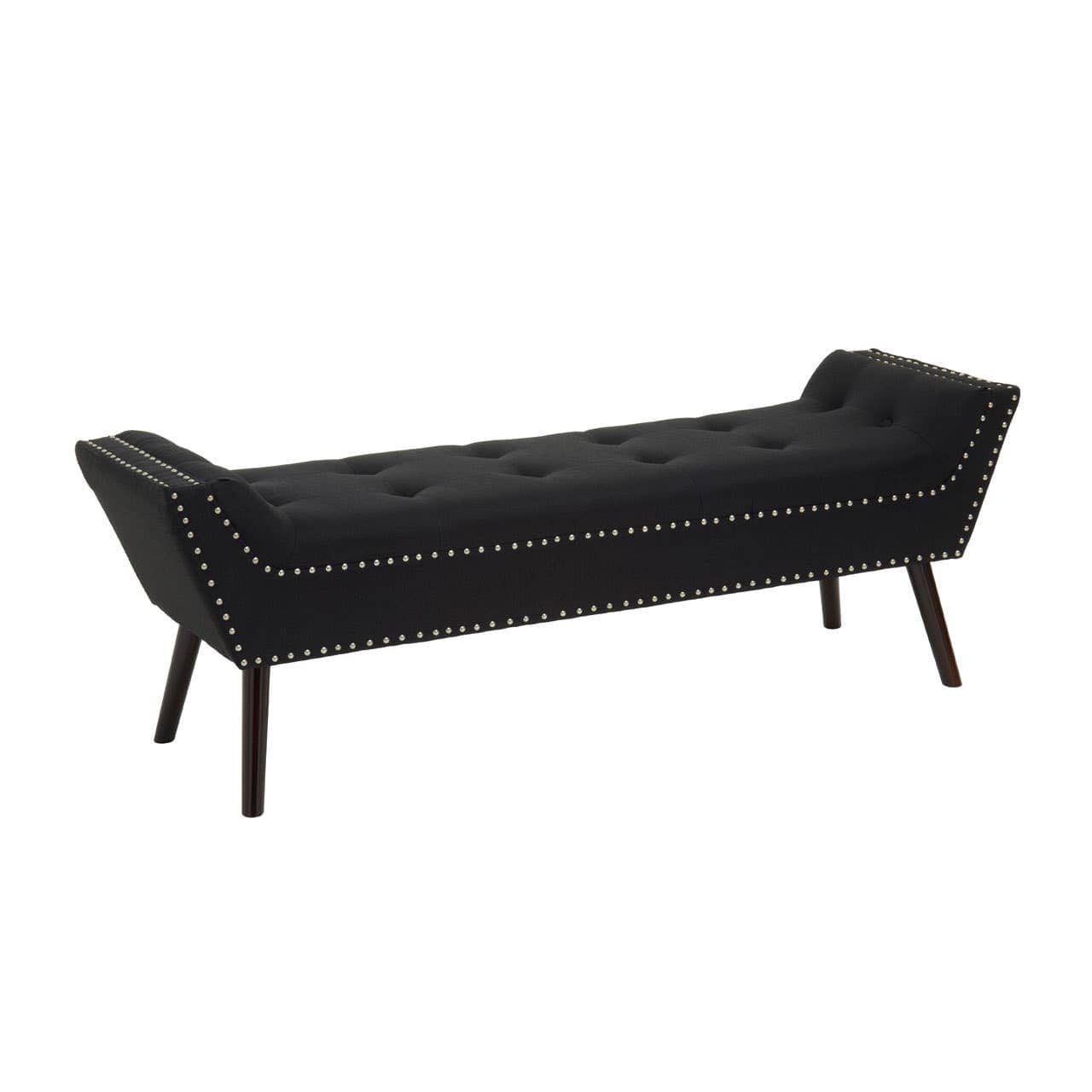 Featuring a button-tufted seat upholstered in tough-wearing black fabric, this bench will make a contemporary addition to the living area. This bench boasts sloping arms with a stud detail, supported with brown rubberwood tapered legs. A perfect end of bed bench seat.