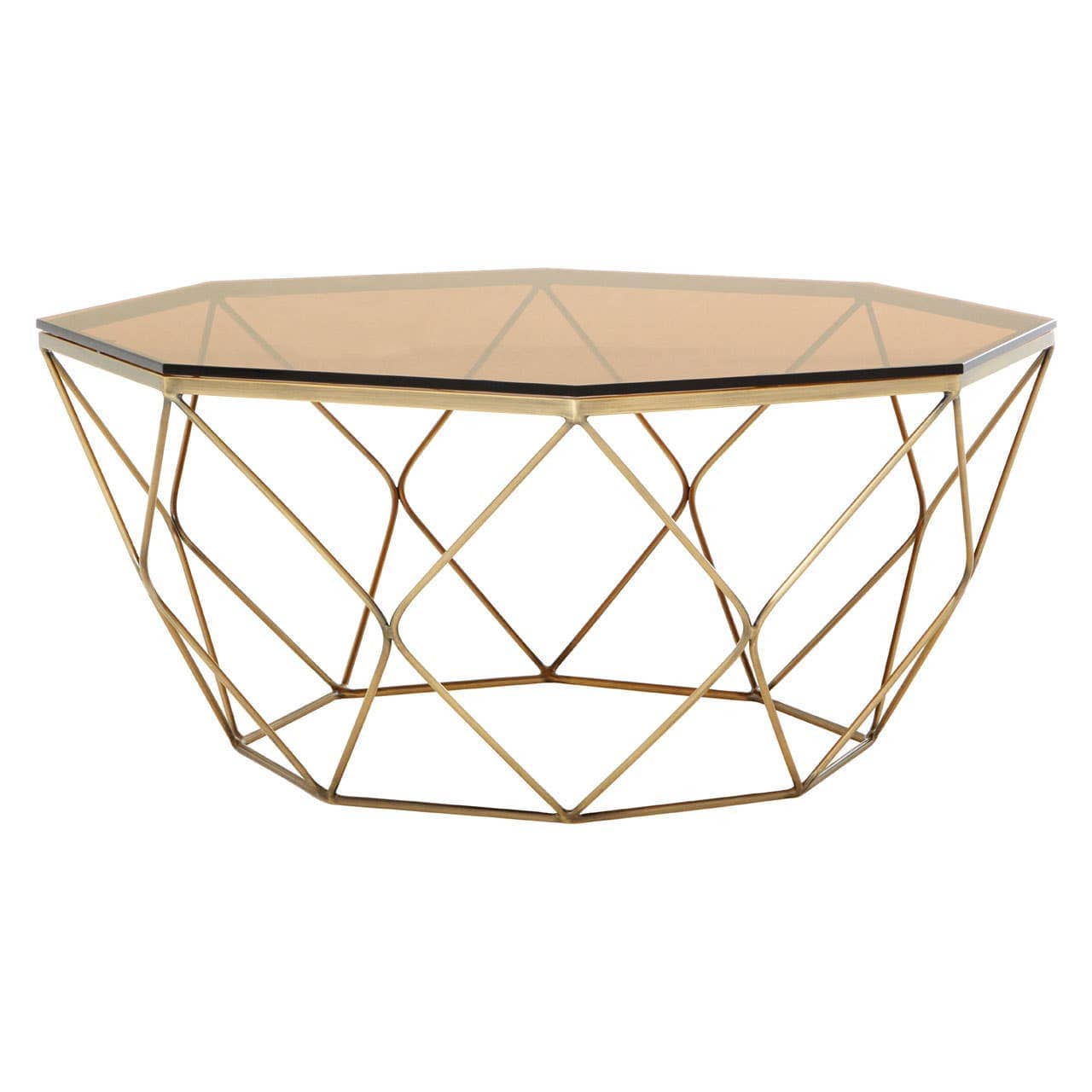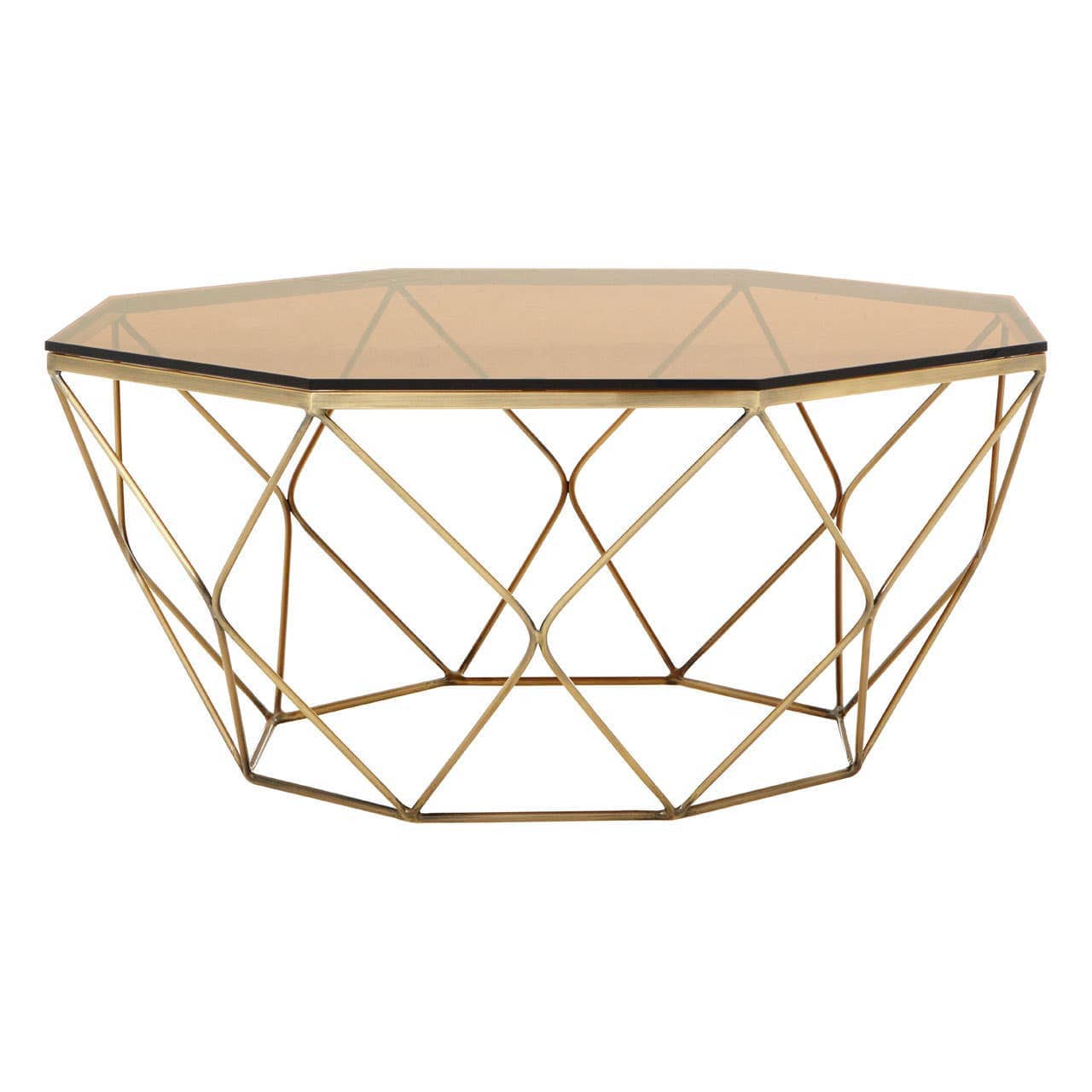 The Allure coffee table's base is formed from slim strips of metal which combine to create a geometric diamond pattern. Its brushed bronze finish accentuates the table's crystalline structure, allowing it to be styled easily with metallic accessories.