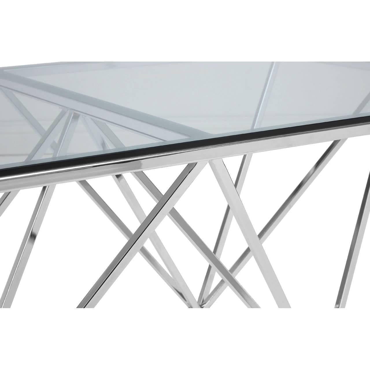 This sleek rectangular coffee table imparts Boutique luxury. The tabletop is made from safe tempered glass, its transparency enabling an uninterrupted view of the distinctive legs beneath.