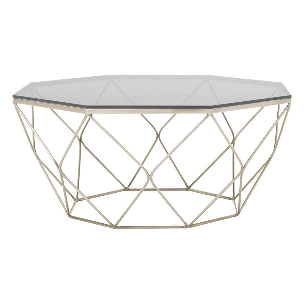 The Allure coffee table's base is formed from slim strips of metal which combine to create a geometric diamond pattern. Its brushed nickel finish accentuates the table's crystalline structure, allowing it to be styled easily with metallic accessories.