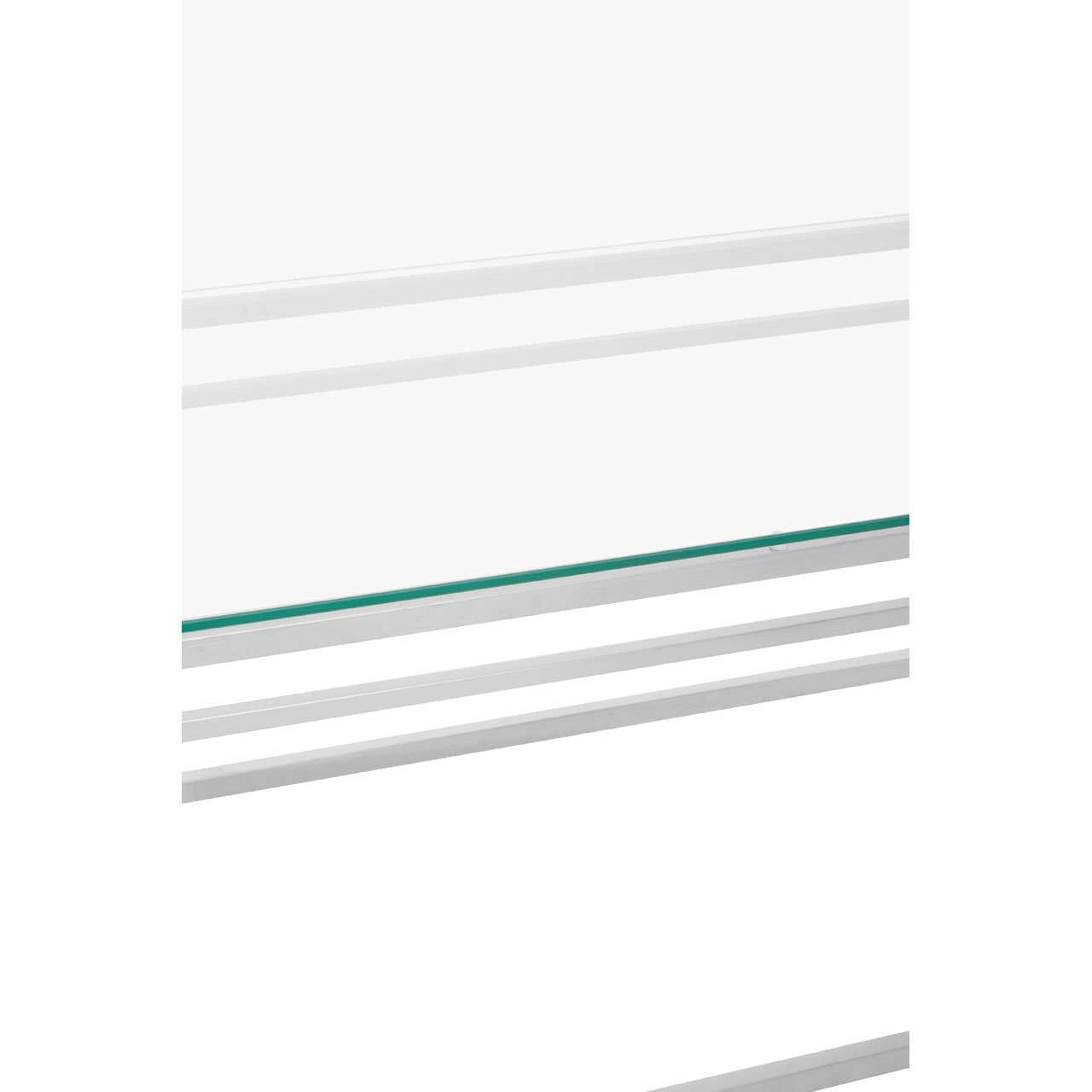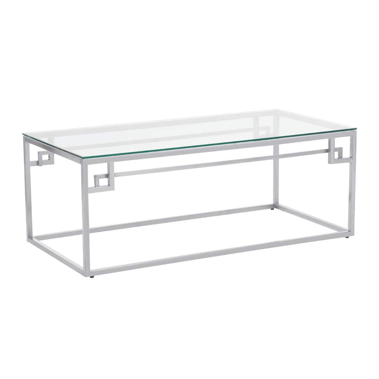 This modern coffee table is made in silver stainless steel frame with a minimal design on the sides for an aesthetic touch, tempered glass top provides surface space. With sharp edges and clean lines, this table goes perfect for modern living spaces.