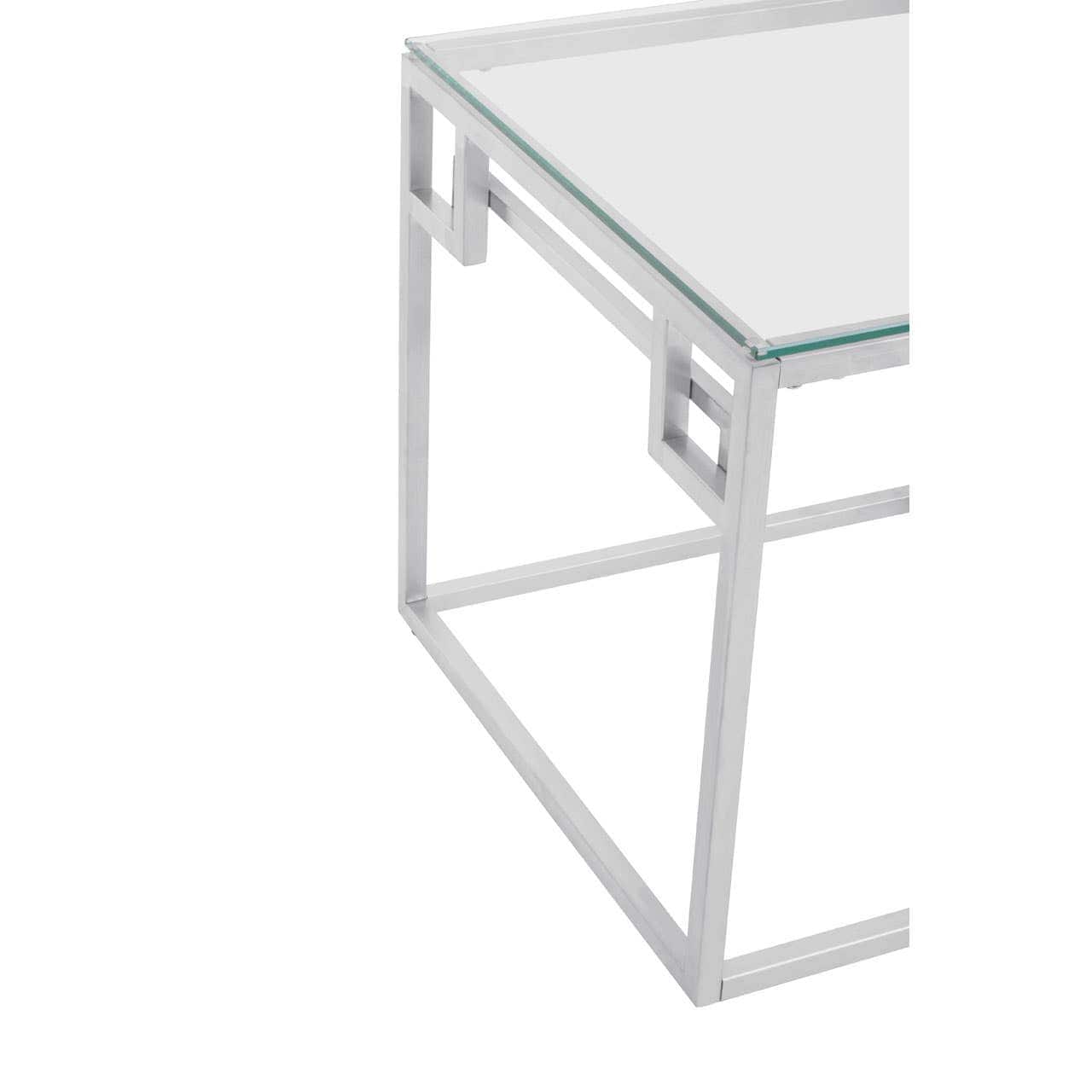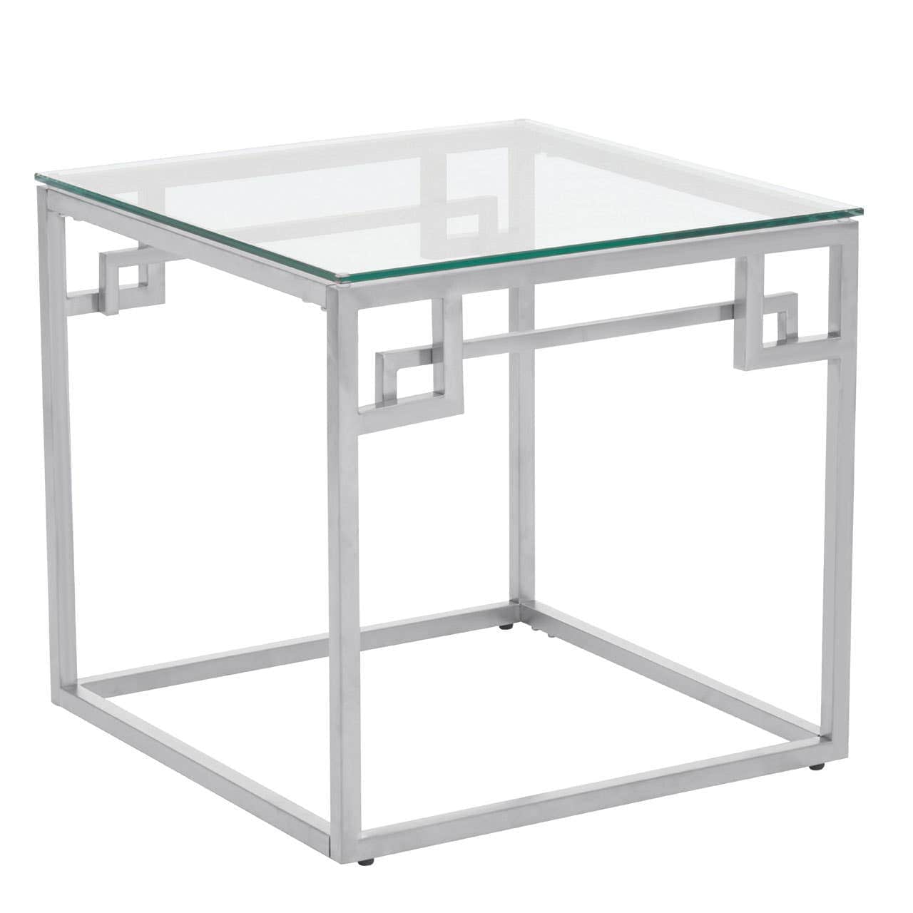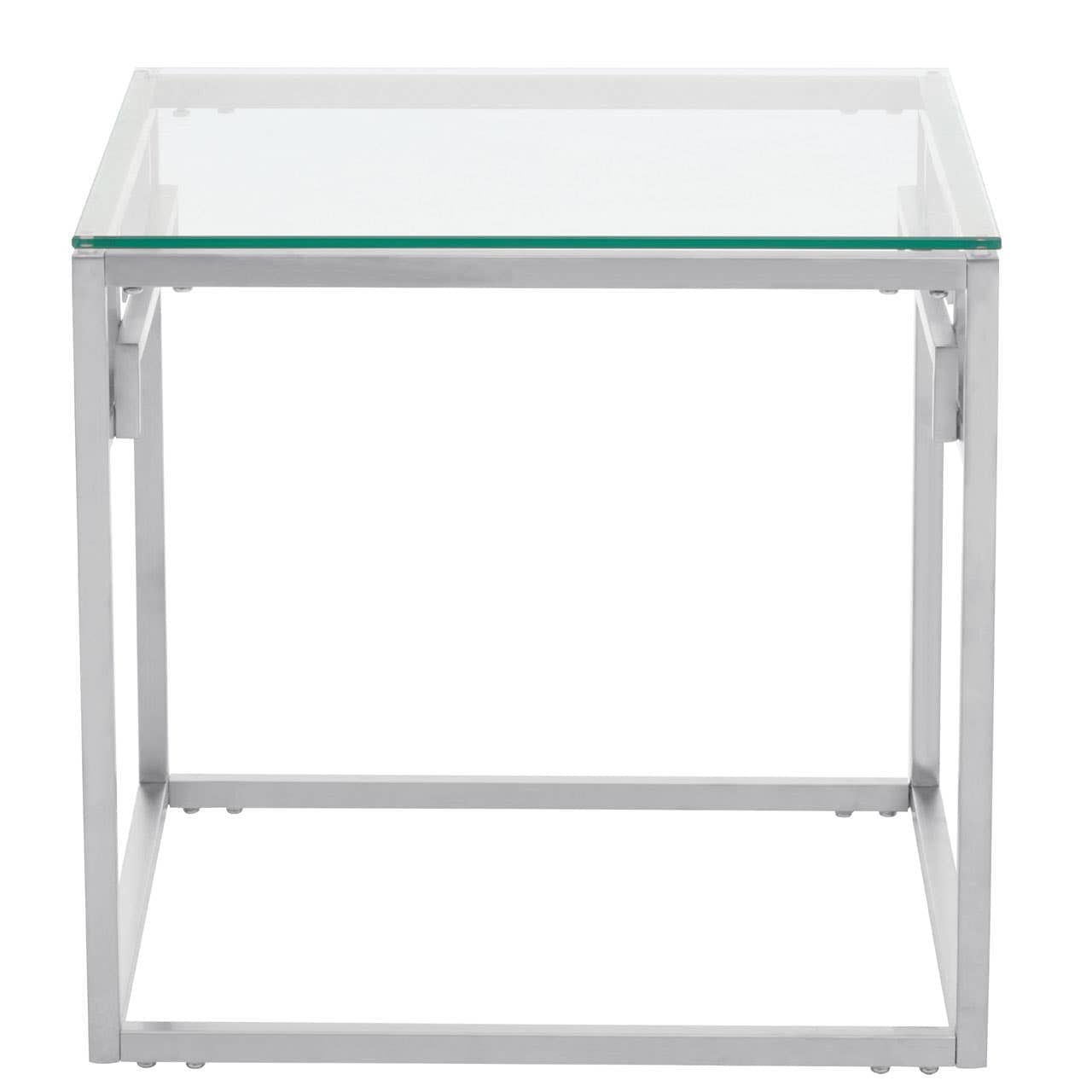 This chic side table is framed in a sturdy silver stainless steel frame with an minimal design on the sides for a touch of glamour, tempered glass top provides ample space. The frame is designed to withstand different conditions matching all modern aesthetics.