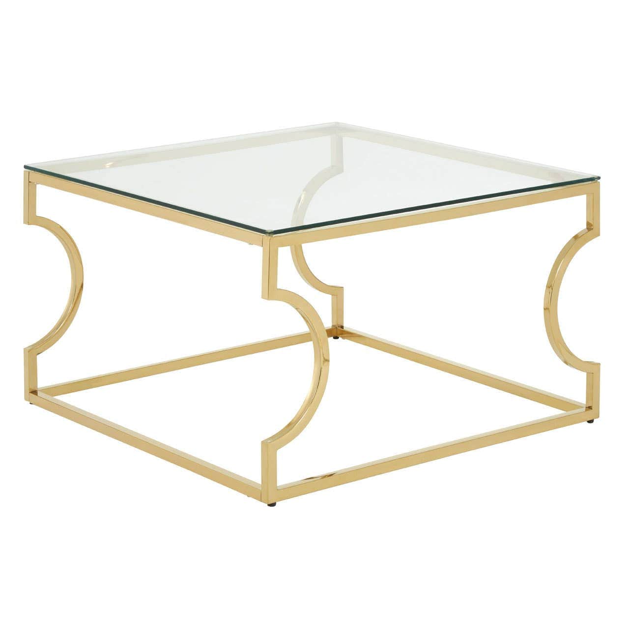 Semi-circular indents at each side subvert the angular lines of the Allure coffee table. Made from smooth stainless steel, the frame boasts a gold finish that makes the table coordinate well with warm metallic accessories.