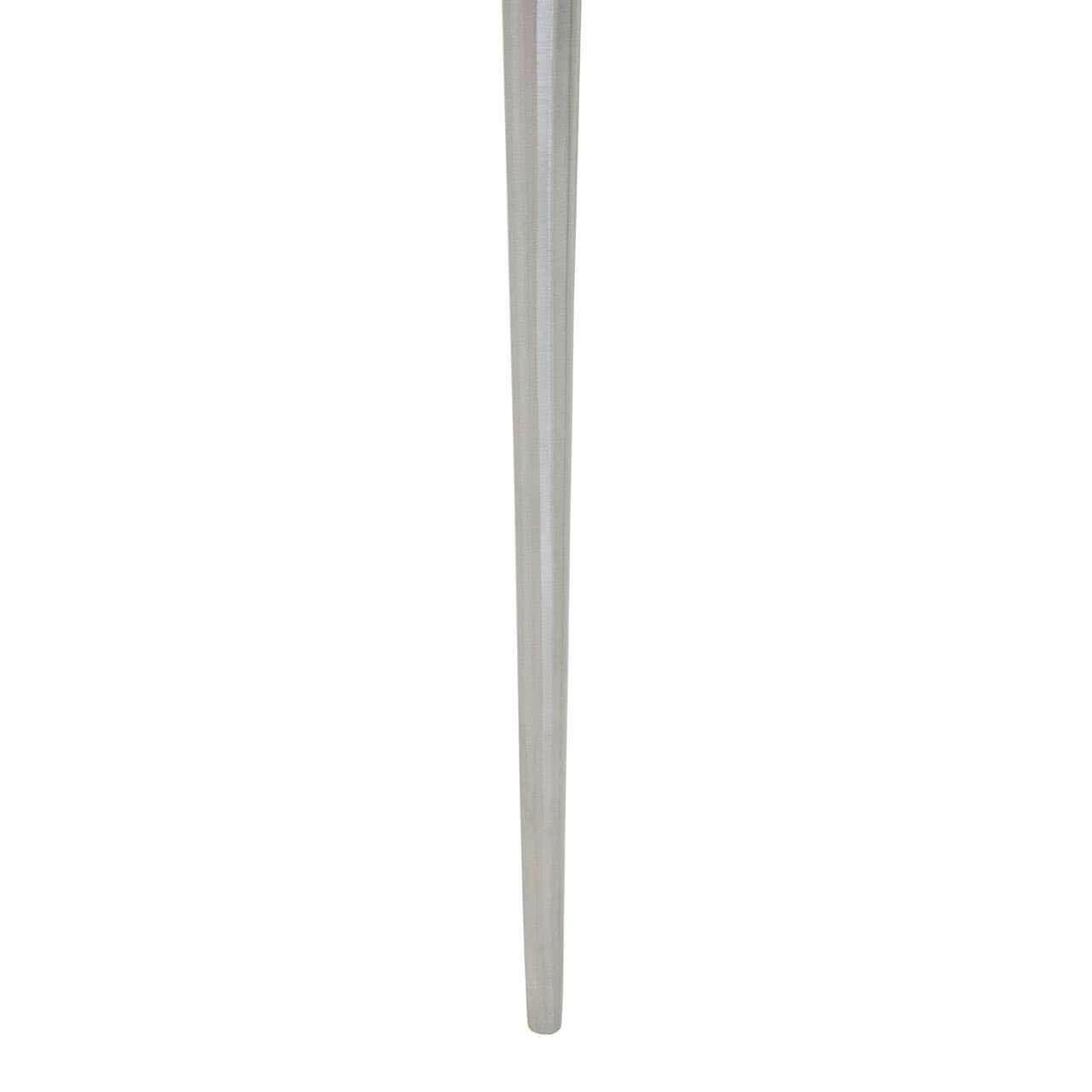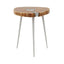 This Almora side table features a unique natural knotted acacia wooden top supported by three sleek, yet sturdy, silver aluminium legs.