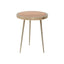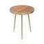 This small Almora side table has a round natural acacia wood top adorned by sleek golden aluminium. The side table features three sleek yet sturdy legs, providing stability and style.