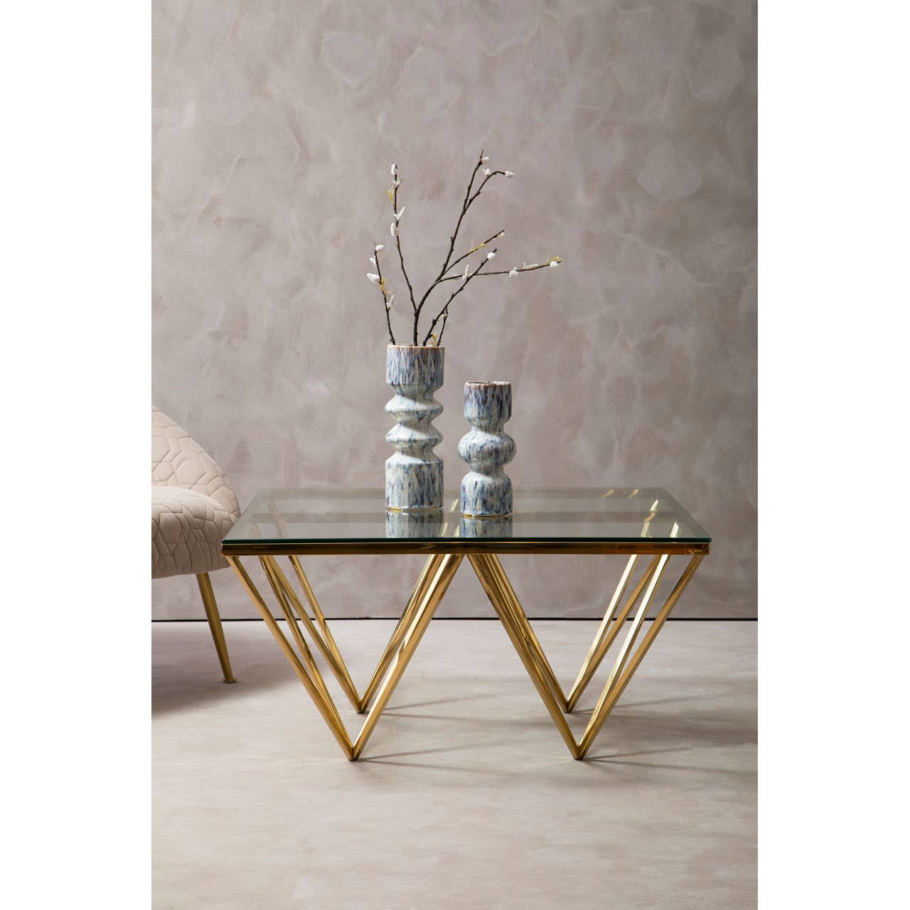 The four legs are made from smooth stainless steel and make a lasting impression thanks to their pincer-like design. Their reflective gold finish makes the table easy to coordinate with warm toned metallics.