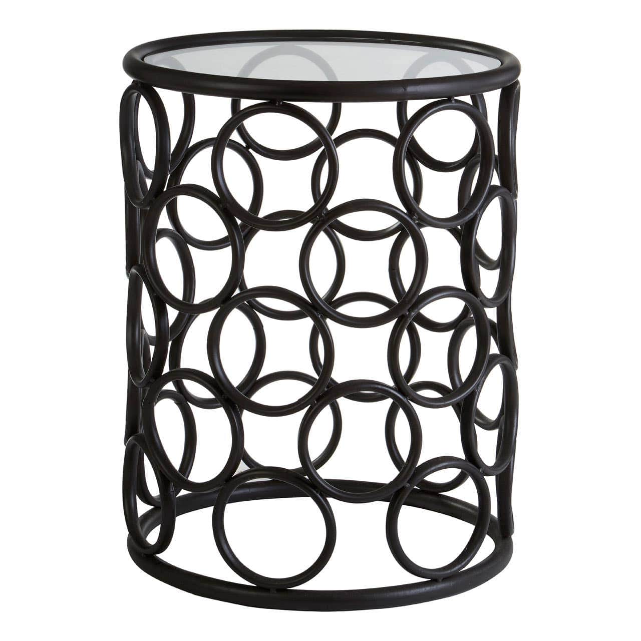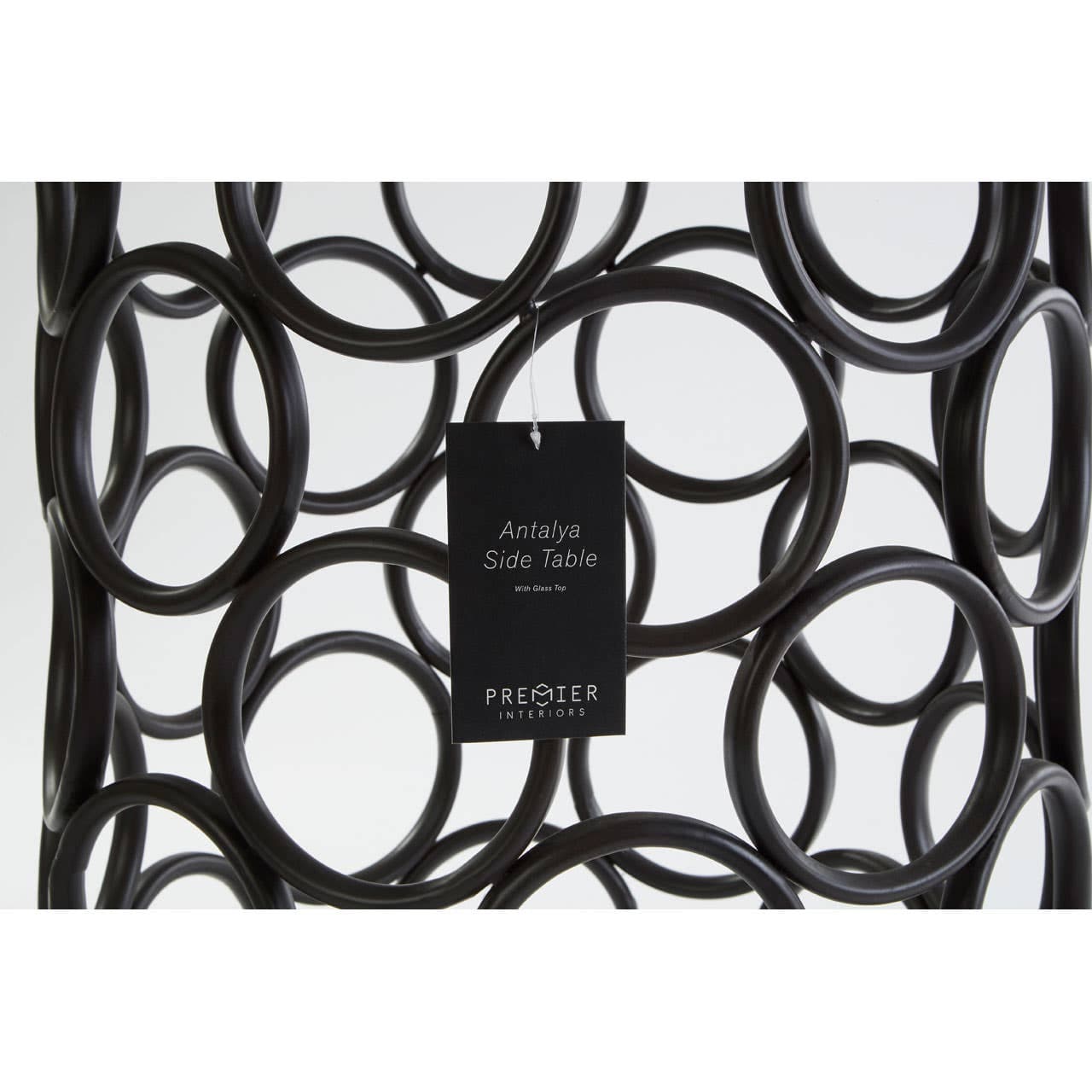 A striking feature in your living space, the Antalya round side table will provide a practical surface space for you, and a fashionable look for your room. Made from robust metal, the round table frame is durable and sturdy, featuring an eye-catching circle design that will complement most decors. A tempered glass surface is strong enough for placing drinks, snacks, plants, lamps, photos, flowers and other decorative features on. Helping to keep your living room organised and tidy, the stylish Antalya side table creates a wonderful feature in your home. *This item has a distressed look, imperfections in the wood and metal are part of the design*