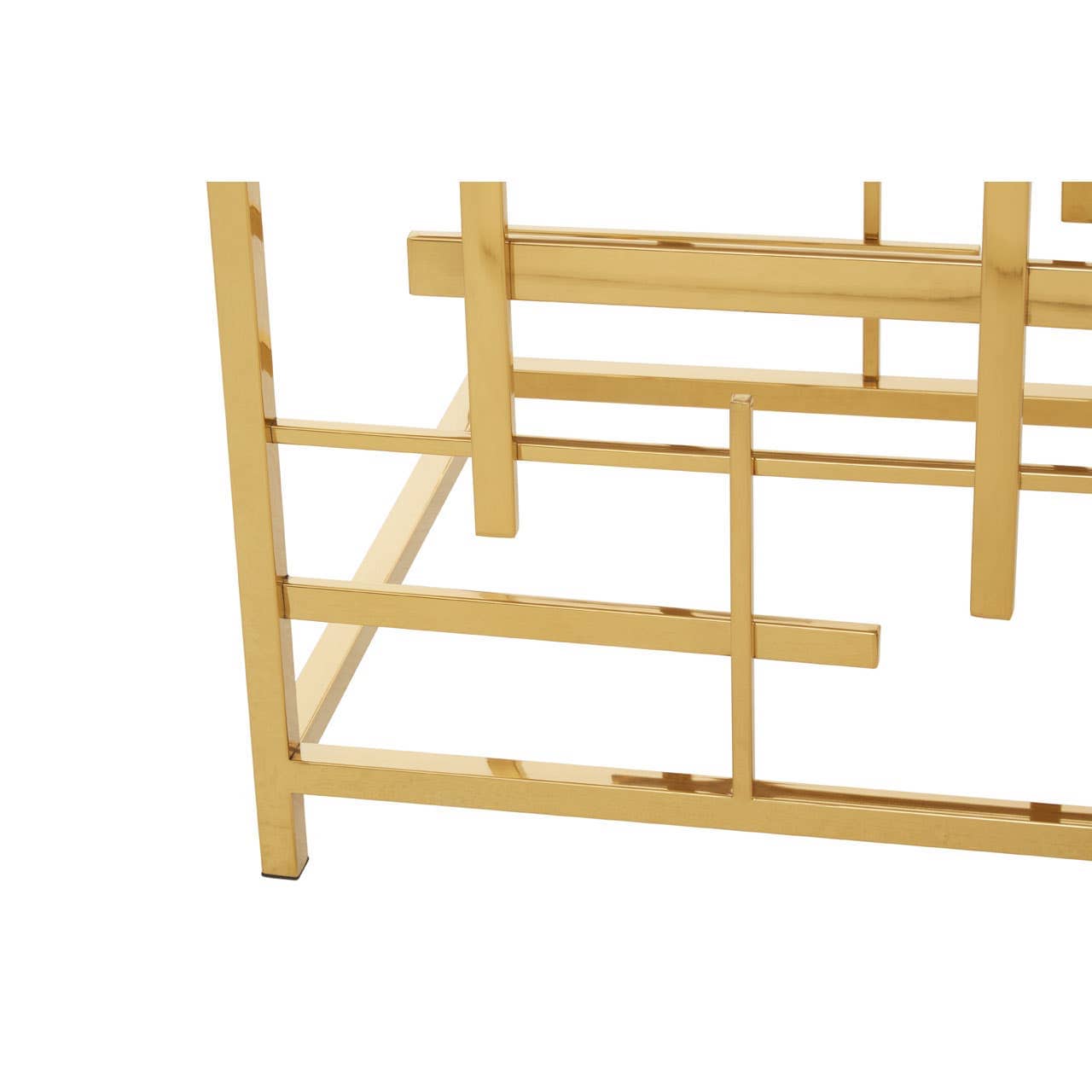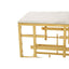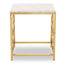 This side table features an asymmetric stainless steel base in the warm metallic finish which enhances its luxe visual aesthetic. Creating a dual contrast, a polished white marble in a square shape sits neatly on the top of this side table.