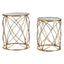 This distinctive design of this table set lends a glam appeal to contemporary and modern themes. Accessorised with a round mirrored glass top, the open-frame metal structure of this table set exhibits curved intersecting lines in a gold finish.