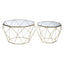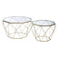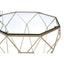 The coordinating pair of Arcana side tables feature a faceted, geometric design frame formed from robust strips of iron. A metallic champagne finish enhances the tables' luxe appeal. The octagon shaped tabletop is crafted from transparent tempered glass. Style with warm metallic furnishings and accessories.