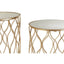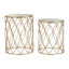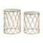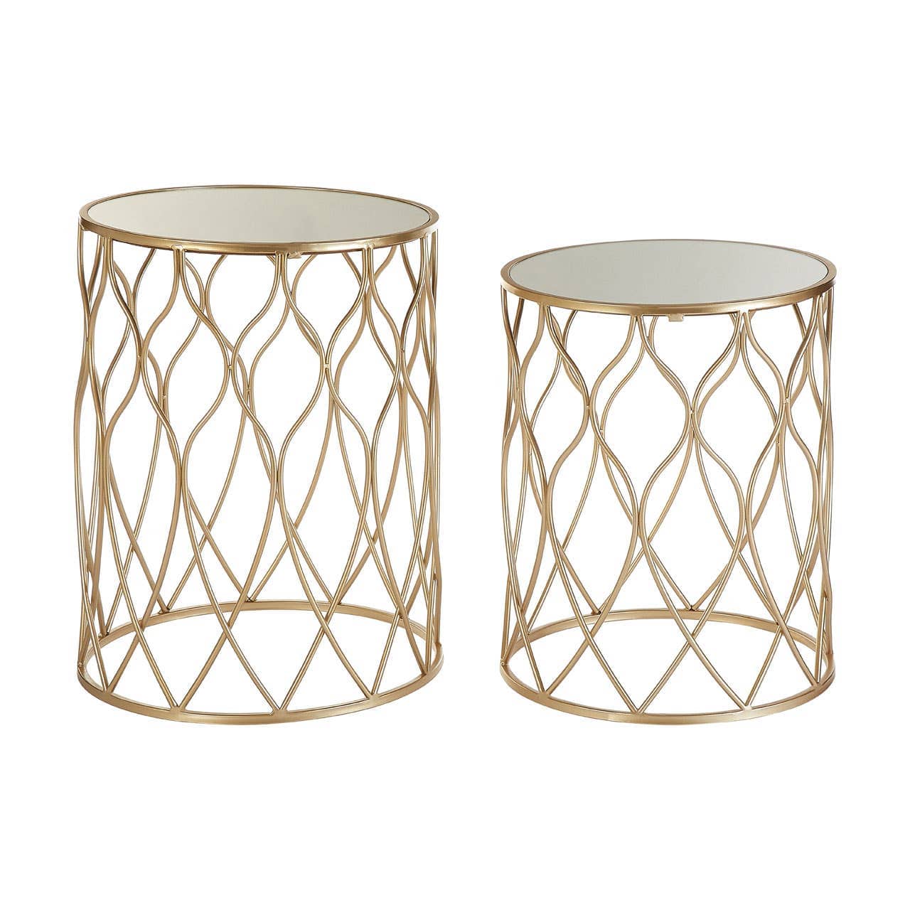 This distinctive design of this table set lends a glam appeal to contemporary and modern themes. Accessorised with a round mirrored glass top, the open-frame metal structure of this table set exhibits curved intersecting lines in a champagne finish.
