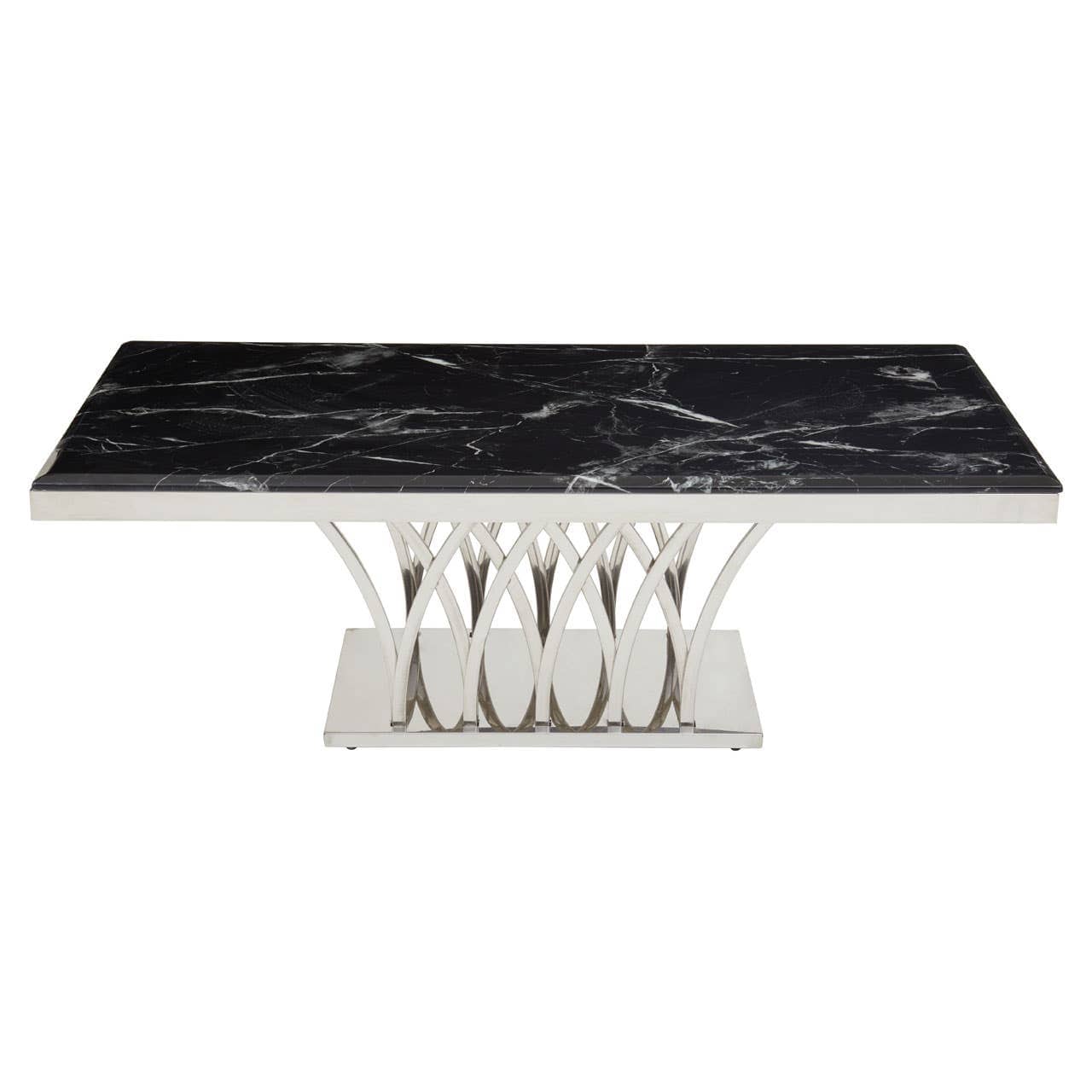 Add a touch of decadance to your decor with the Arenza coffee table. The sleek black marble tabletop sits on an intricate silver base, making this statement piece a stylish focal point in any living space.