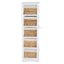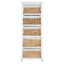 This modern chest features a tall, renewable acacia wood stand in chic white finish. Made from natural water hyacinth, five pull out baskets contrast the simple painted frame. Each woven basket in rustic texture is completed with a removable liner inside. This decorative chest will keep the bedroom or bathroom neat and tidy.