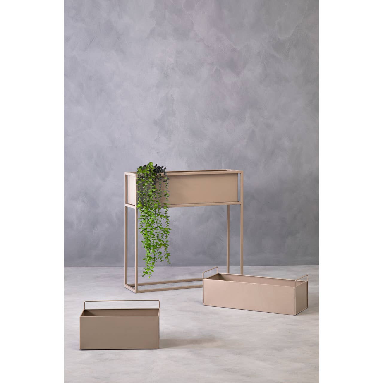 This floor standing plant box gives an advantage of alternative square meters in the home, terrace or balcony. Made from robust iron and given a natural finish, this rectangular box sits neatly in a slim intersecting base for added support and style.