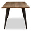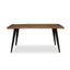 This Assia table is a natural statement piece for the dining area. The brown veneer wood top is notable for its bold grain and textured finish and suported by black slender legs.