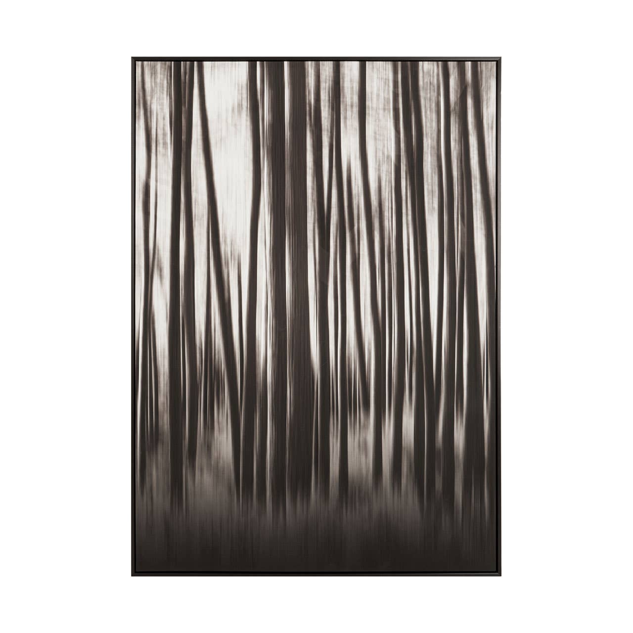 This large piece of wall art deploys natural and black tones to create a mesmerising woodland scene. It's frame is crafted from natural wood, with a minimal design and black finish that does not distract the eye. The scene is applied on textured canvas. Part of the Astratto collection, use it to make a statement in the living room or hallway.