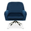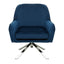 The Avery chair features a curved backseat and flared armrests with a foam padded seat upholstered in sumptuous midnight velvet. The luxurious seat is supported by a chrome finish cross-base which adds style with support.
