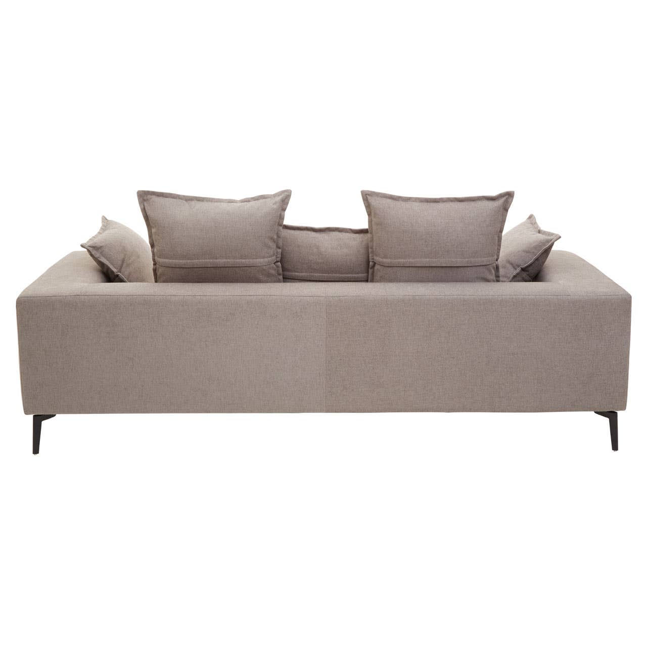 The spacious three-seat Avignon sofa with cushions features a low back, level with armrests. Upholstered in grey-coloured fabric and supported by metal legs complements the linear detailing of the sofa.