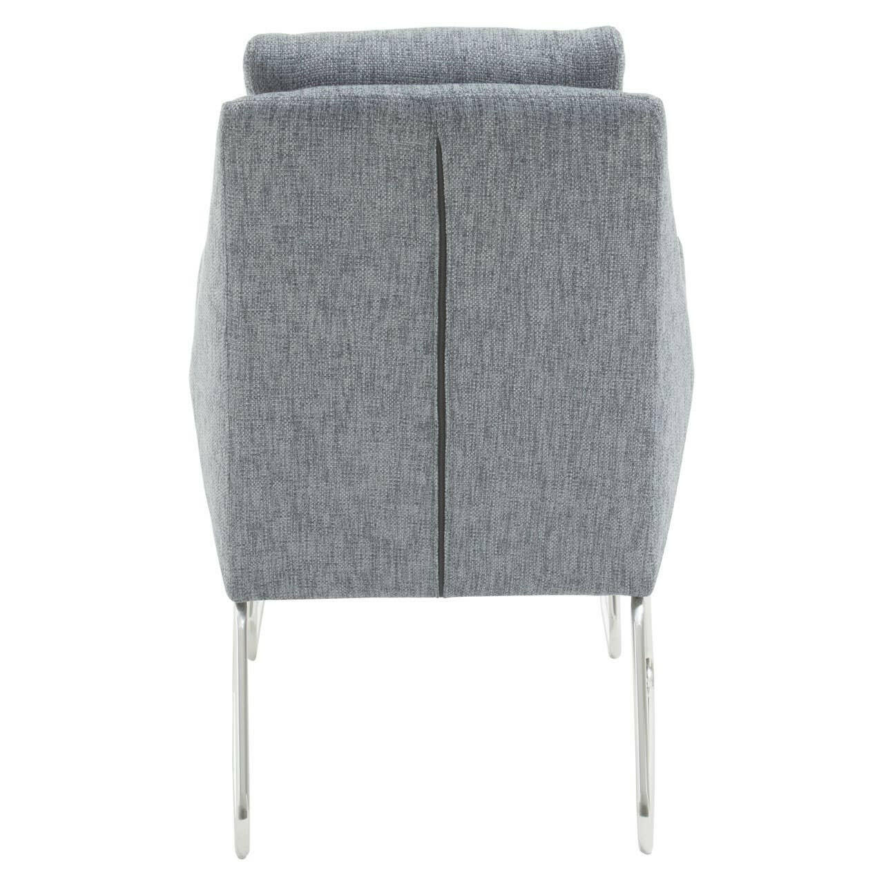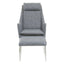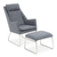 Perched on a sturdy metal base, this foam-padded chair boasts an angular profile that is upholstered skilfully in grey fabric. The gliding armrests offer a cosy seating experience, and the matching footstool will ensure a comfy retreat from a tiring day.